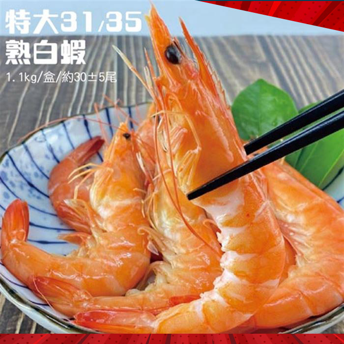 【築地一番鮮】特特大31/35熟白蝦1盒(1.1kg/盒/約30尾)
