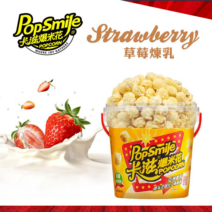 卡滋-蘑菇球爆米花-草莓煉乳150g/桶