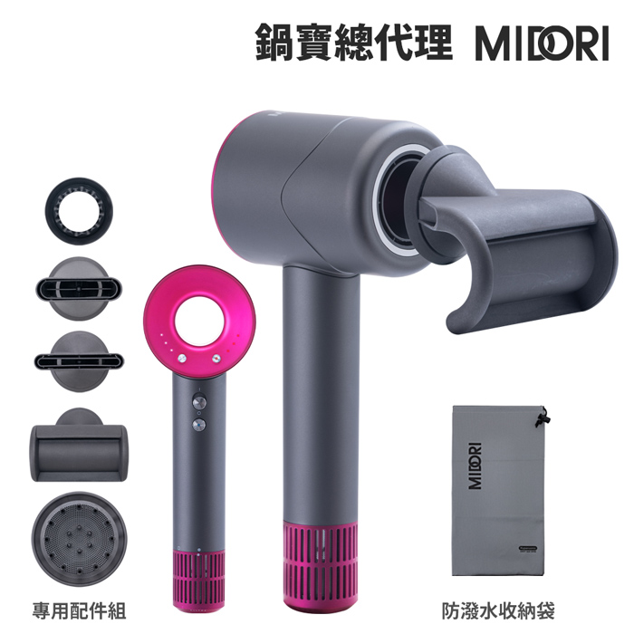 MIDORI美多莉高風速溫控負離子吹風機-(配件組+收納袋)