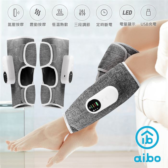 aibo USB充電式 無線美腿按摩器(氣壓+震動+熱敷)-灰色