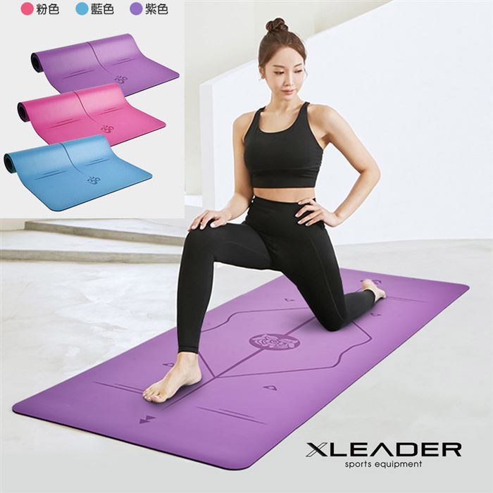 【Leader X】天然橡膠PU雙面防滑輔助正位線瑜珈墊(三色任選)