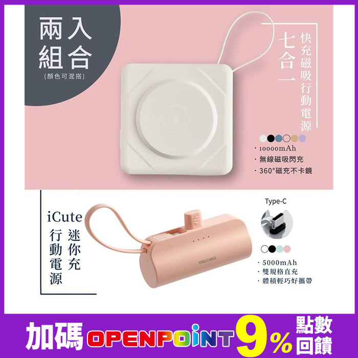 【米沃】 七合一快充磁吸+TypeC接頭 iCute 行動電源-多色