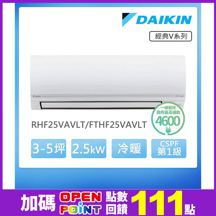 大金 經典V 3-5坪變頻冷暖分離式冷氣(RHF25VAVLT/FTHF25VAVLT)