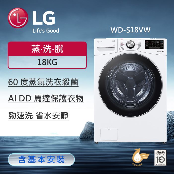 【LG樂金】18KG 蒸氣滾筒洗衣機 冰瓷白 WD-S18VW