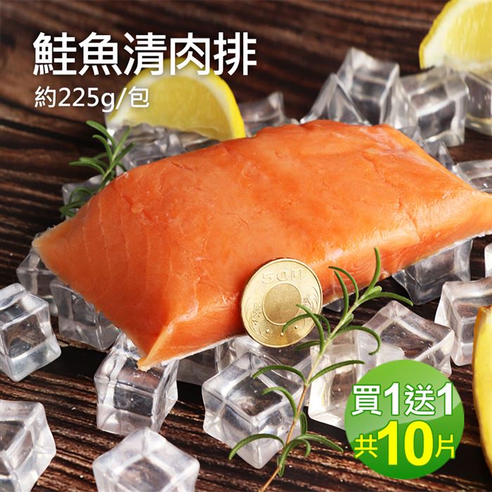 買5送5【築地一番鮮】鮮嫩無刺鮭魚清肉排(225G/片)