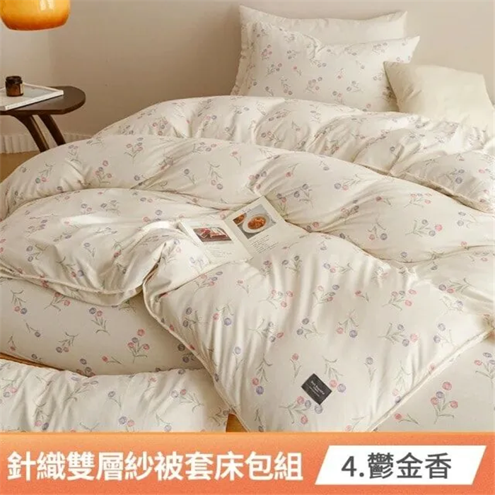 【京都手祚】4D雲感針織雙層紗被套床包四件組(雙人)