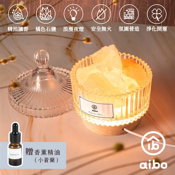 [贈手機支架]aibo 晶燦皇冠 無火香薰擴香石鹽燈(贈香薰精油)
