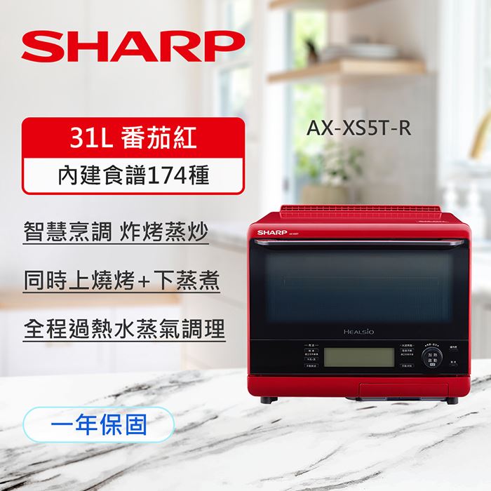 【夏普 SHARP】HEALSIO烘培水波爐 番茄紅 AX-XS5T-R
