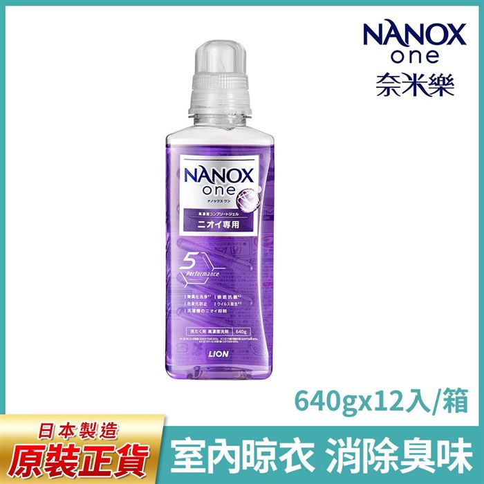日本獅王奈米樂超濃縮抗菌洗衣精室內晾衣 640gx12入/箱