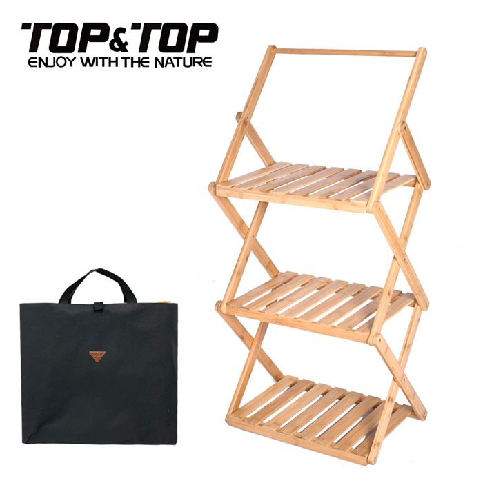 韓國TOP&TOP】折疊式三層實木置物架 贈收納袋/木架/露營架