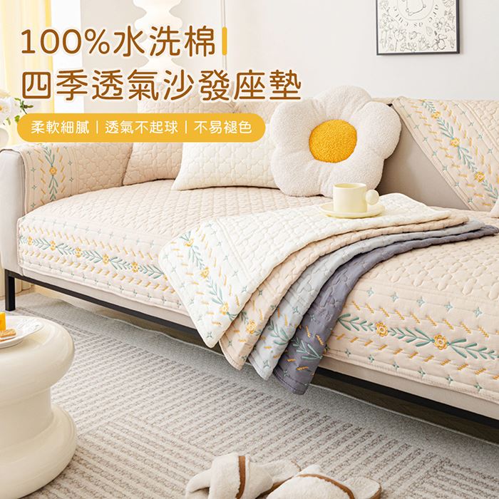 四季透氣水洗棉沙發座墊-2入組(70*70cm)杏色