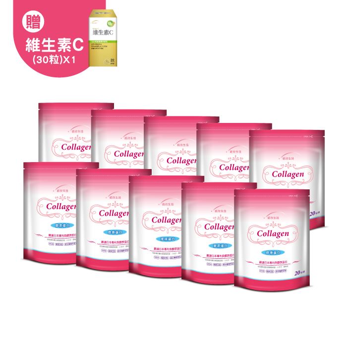 膠原蛋白20入*10袋+贈 TX維生素C 30粒*1加碼贈維生素C一瓶原價$4900特價$1999