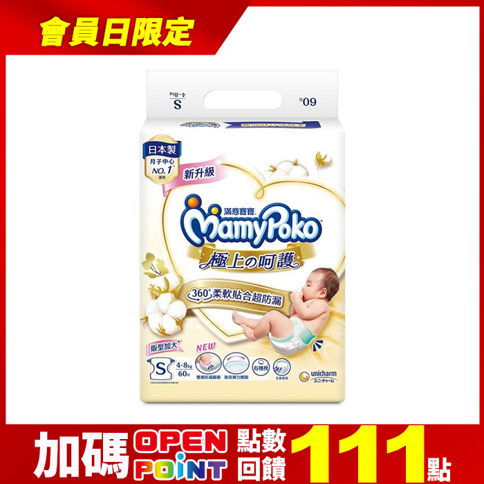 紙尿褲S(60片*4包/箱)360度柔軟貼合防漏原價$1,799特價$1,599