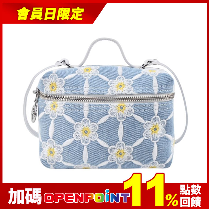 雛菊刺繡牛仔斜背包(迷你/藍)