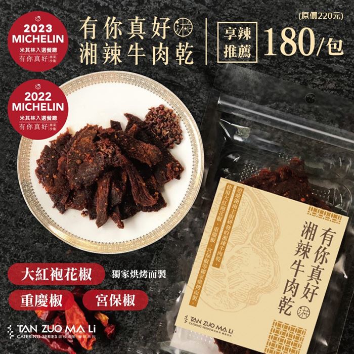 湘辣牛肉乾(100g/包)結帳現折25元原價$220特價$180