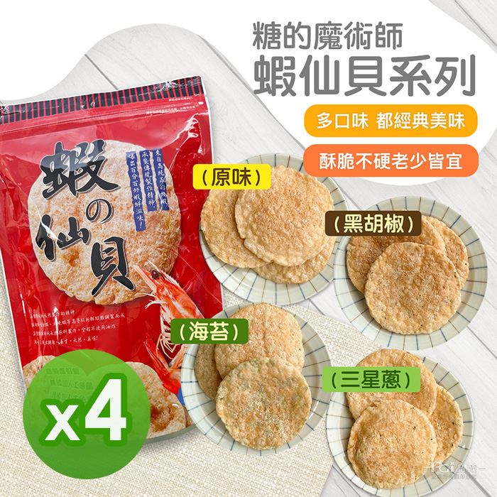 蝦仙貝(原味&海苔&黑胡椒&三星蔥)(60g)_4包組美味零食從不斷片原價699特價$519