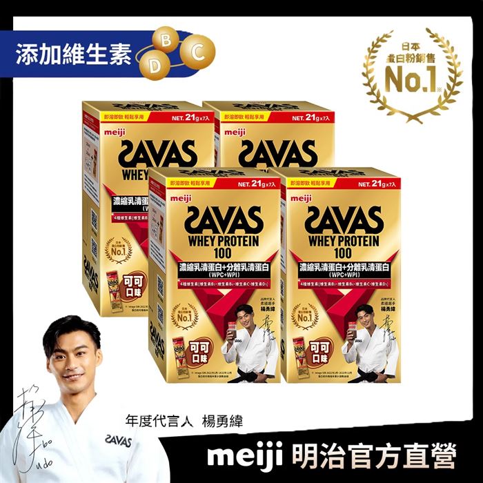 SAVAS乳清蛋白粉-可可口味(21gx7入x4盒)日本蛋白粉領導品牌原價$1820特價$1380