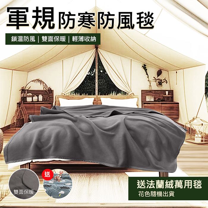 台灣製軍規防寒防風毯灰色*1 送法蘭絨萬用毯*1輕薄防風均勻受熱原價$4980特價$999