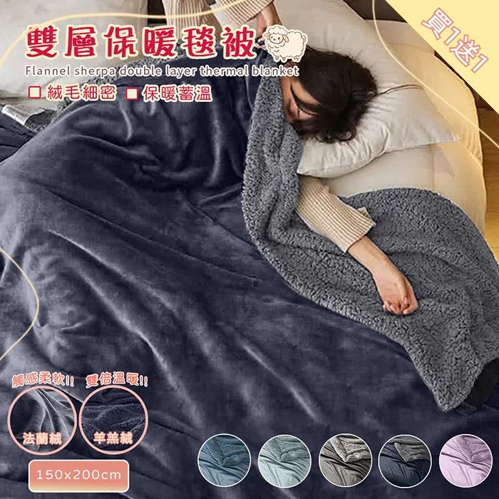 【買1送1】質感純色抗靜電加厚法蘭絨x羊羔絨毯被-(贈品顏色隨機)