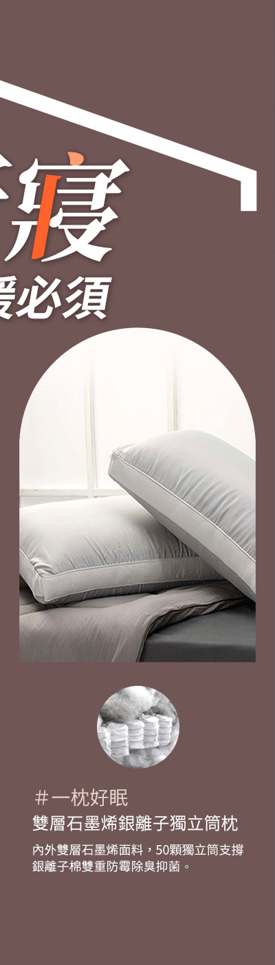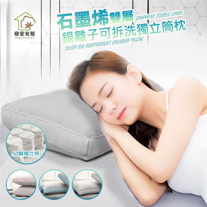 台灣製 雙層石墨烯銀離子可拆洗獨立筒枕(贈品顏色隨機)銀離子+石墨烯原價$3960特價$988