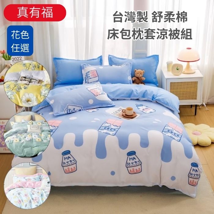 雙人/加大床包枕套組-萊賽爾天絲-開心時光-台灣製造萊塞爾材質原價$4280特價$2144