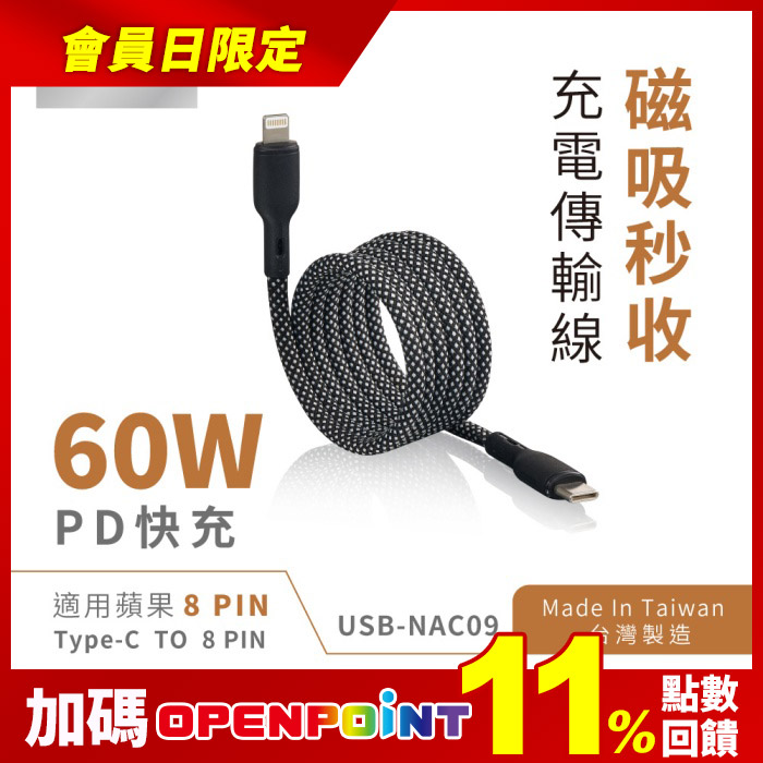 磁吸秒收充電傳輸線(typeC轉蘋果)PD快充 磁吸秒收原價$500特價$279