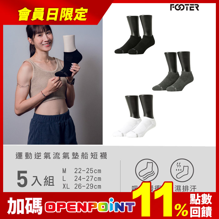 單色運動逆氣流氣墊船短襪(T31)-5入組除臭x透氣x抗菌原價$1400特價$899