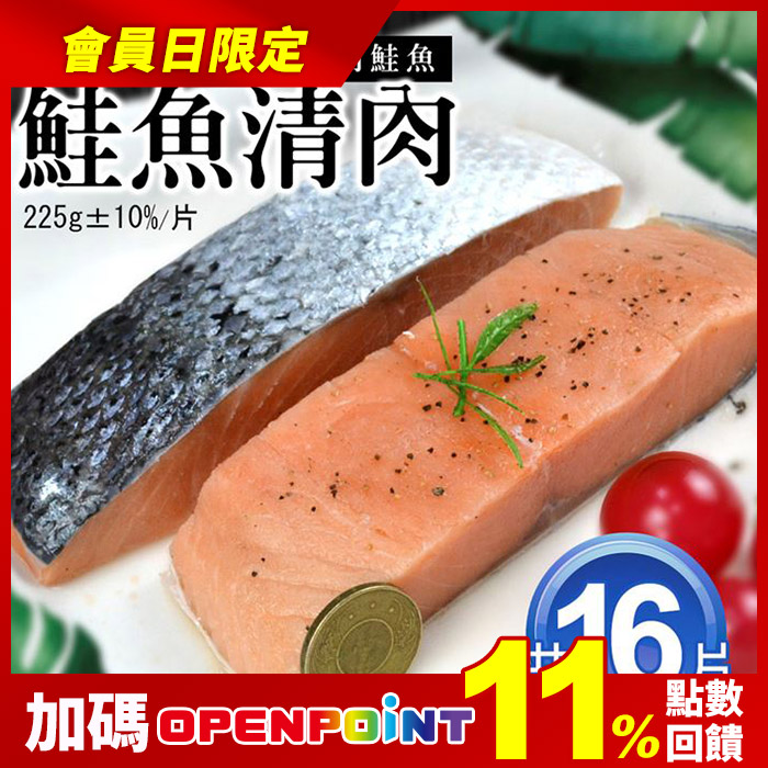 鮮嫩無刺鮭魚清肉排16片(225G/片)鮮嫩肥 鮮嫩有彈性原價$3180特價$2224