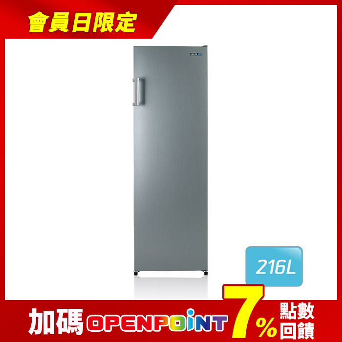 216公升自動除霜定頻直立式冷凍櫃(SRF-220F)電子6段控溫原價$16900特價$14900