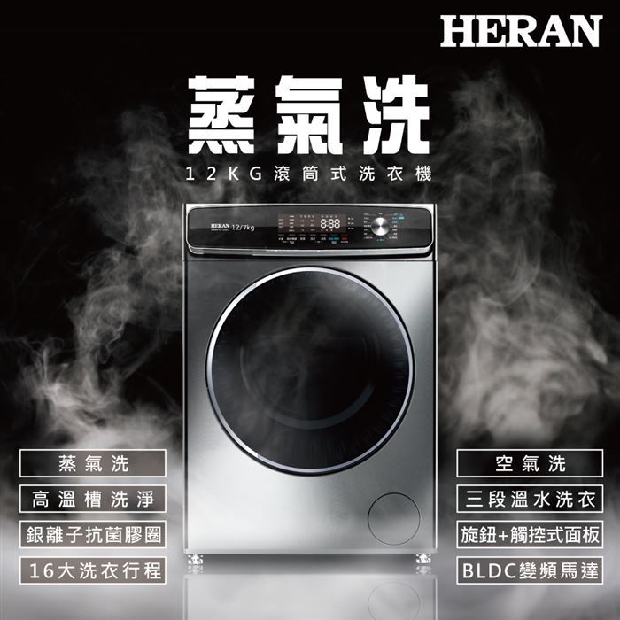 12KG變頻 蒸氣洗脫烘滾筒洗衣機 HWM-C1243V蒸氣洗原價$20,900特價$13,900
