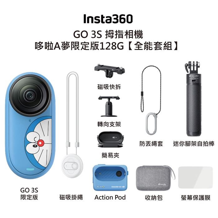 GO3S 4K拇指相機哆啦A夢限定版128G-全能套組 原廠公司貨限時優惠組合原價$21,325特價$20,790