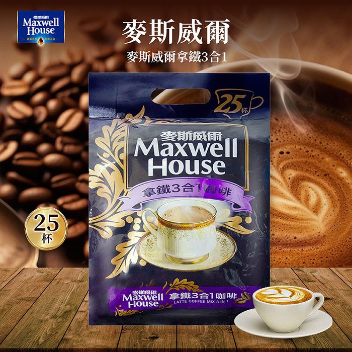 拿鐵3合1咖啡-TH-25*14g-(350g/袋)任2件5折原價$185特價折後92.5元/袋