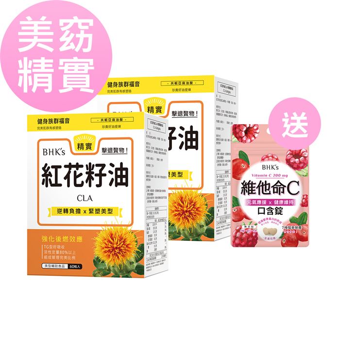 紅花籽油CLA 軟膠囊 2盒組(60粒/盒)贈維他命C口含錠原價$1,780特價$1,190