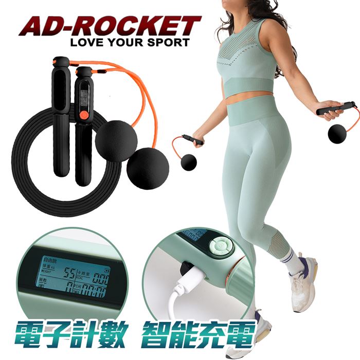 充電智能磁控計數跳繩 無繩+有繩 超值組(黑橘)極致舒適矽膠握把原價$990特價$399