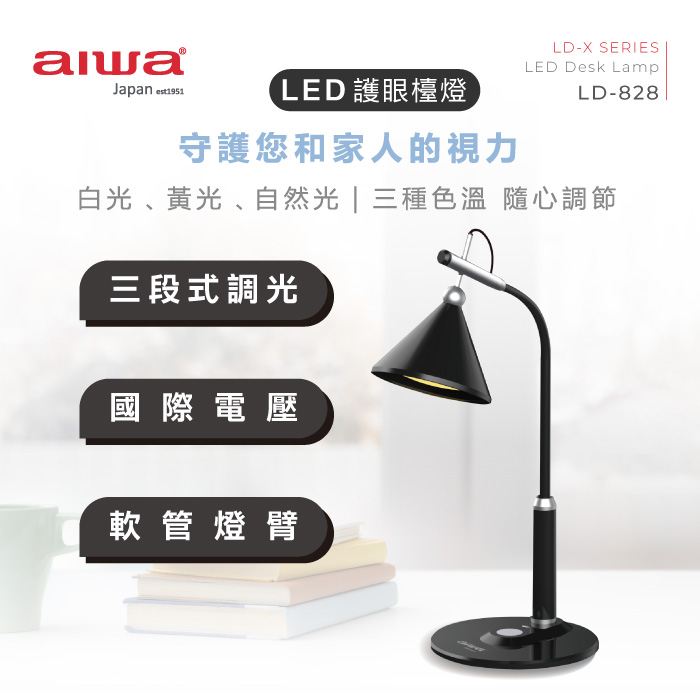 LED護眼檯燈 LD-828(黑)白光、黃光、自然光原價$1,290特價$999