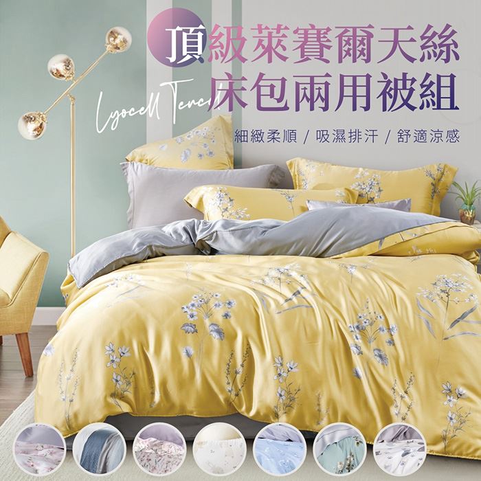 天絲床包兩用被四件組(花色可選)-雙人加大(附提袋)嚴選萊賽爾天絲原價$3,280特價$1,880