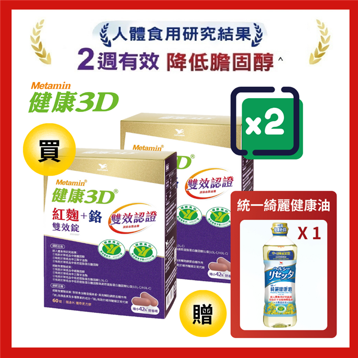 紅麴+鉻雙效錠 2盒組贈綺麗健康油一瓶原價$5,160特價$3,888