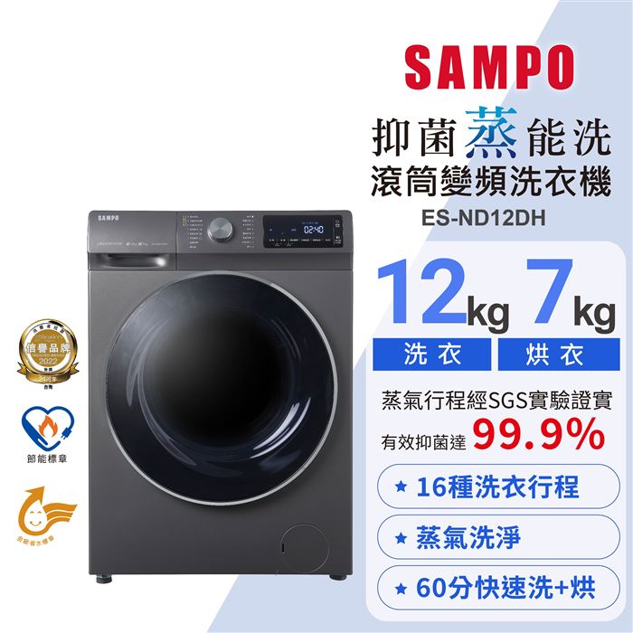 12公斤蒸洗脫烘四合一變頻滾筒洗衣機 ES-ND12DH60分快速洗原價$24900特價$19900