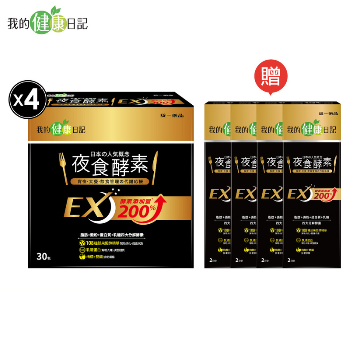 夜食酵素EX 30入 四盒組 (贈夜食EX 8入)2倍有酵 代謝更有感原價$3560特價$2699