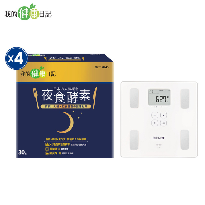 【超值特惠組】日記夜食酵素四盒X歐姆龍HBF222T藍牙體脂計輕鬆掌握健康關鍵原價$6140特價$4659