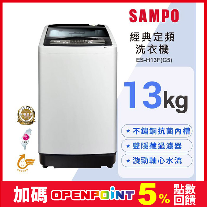 13公斤經典系列定頻直立式洗衣機 ES-H13F(G5)緩降式上蓋設計原價$13,900特價$12,490