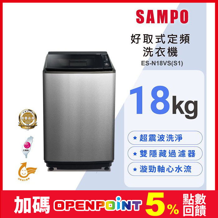 18公斤好取式定頻直立洗衣機 ES-N18VS(S1)超震波洗淨原價$20,990特價$18,990