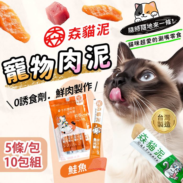 寵物肉泥 10包組(5條/包)-鮭魚獨立包裝 方便餵食原價$799特價$390