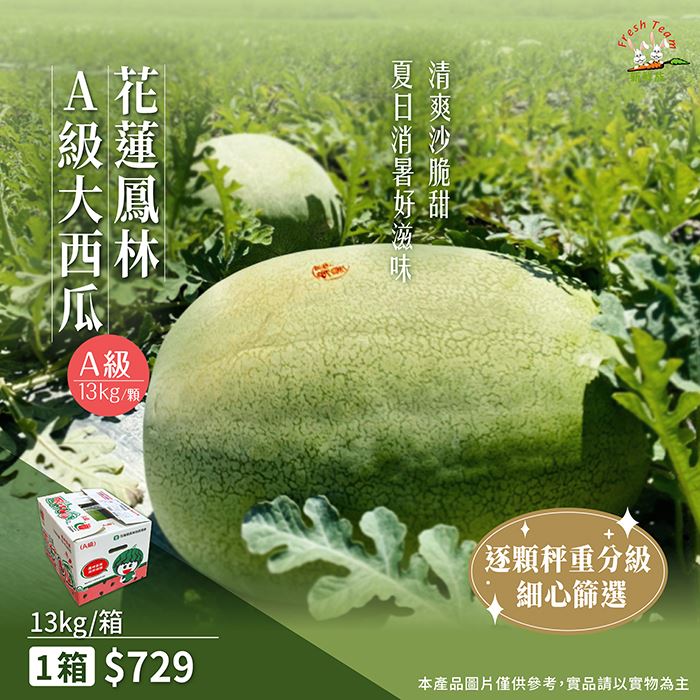 A級西瓜13kg/顆/箱沙沙口感 爽甜消暑原價$875特價$729