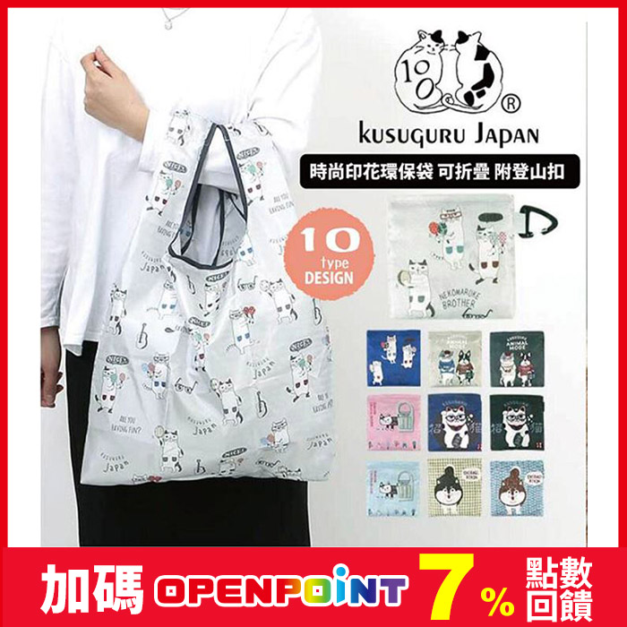 日本眼鏡貓可折疊收納購物袋(附登山扣) - 10款可選日本匠心 便攜實用原價$590特價$490