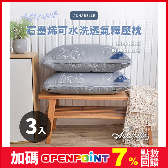 【3入組】石墨烯可水洗透氣釋壓枕平均一件$259原價$3,840特價$777