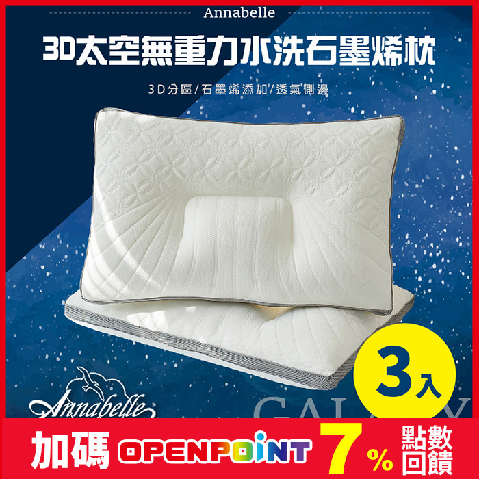 【3入組】3D太空無重力水洗石墨烯枕平均一件$259原價$4,620特價$777