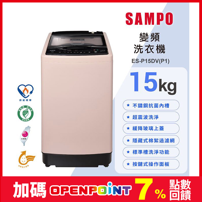 15公斤超震波變頻直立洗衣機 ES-P15DV(P1)超震波洗淨原價$17,900特價$15,900