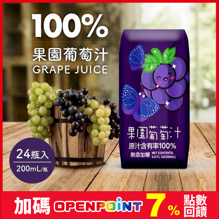 100%果園葡萄汁-紫斑蝶款(200ml*24瓶入/箱)愛心果汁守護紫斑蝶原價$789特價$549