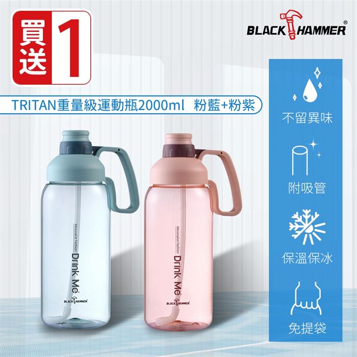 BLACK HAMMER TRITAN重量級運動瓶2000ml (粉藍+粉紫)瓶身刻度 記錄補水量原價$1,100特價$490